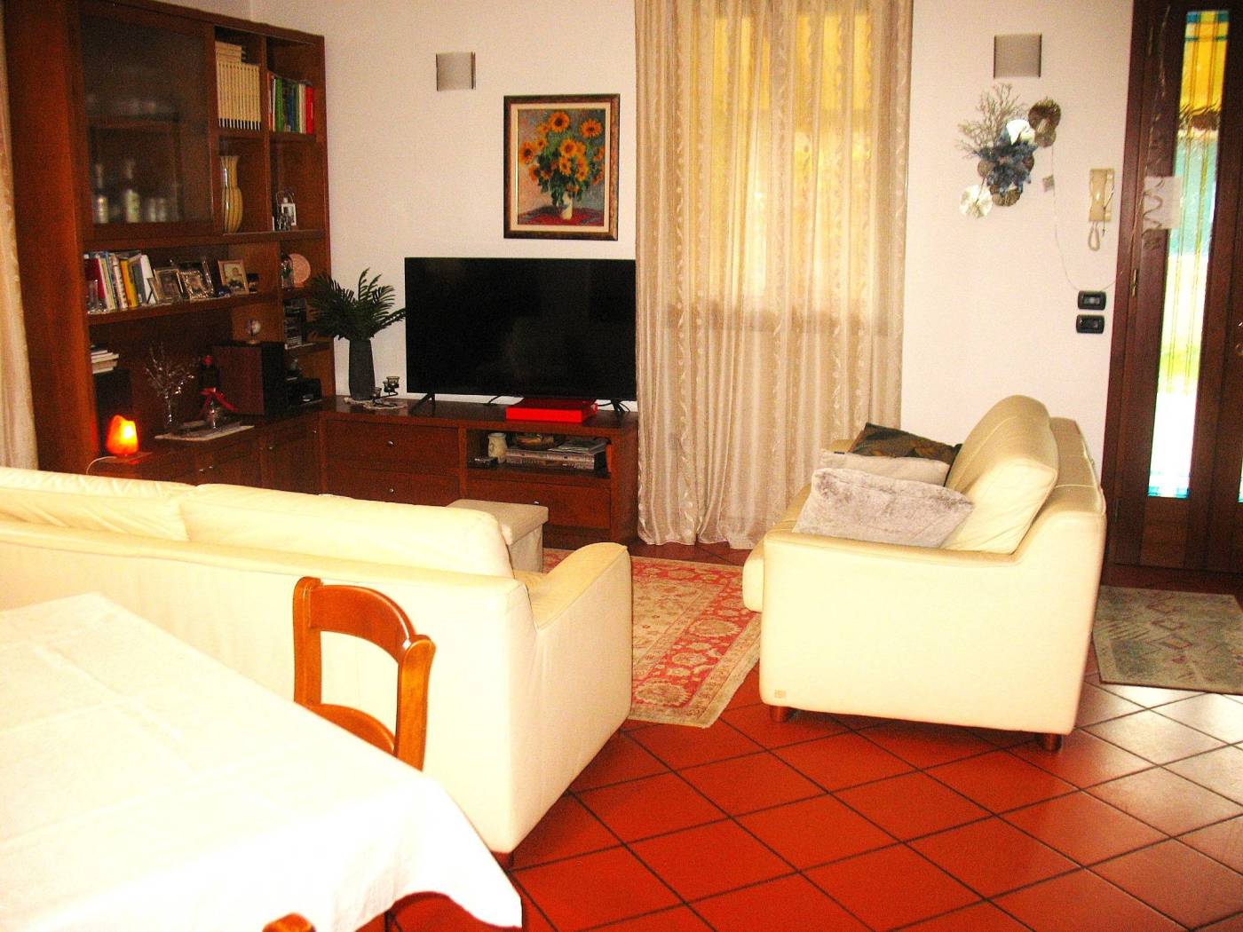 Villa bifamiliare in zona residenziale tranquilla contornata dal verde con ingresso pedonale e carraio indipendente, ampio giardino, composta al piano terra da soggiorno cucina open-space, bagno garage vano scale, al piano primo vano scale tre camere e un bagno, al piano interrato vano scale taverna bagno lavanderia e cantina. Finiture buone e in ottimo stato di conservazione.